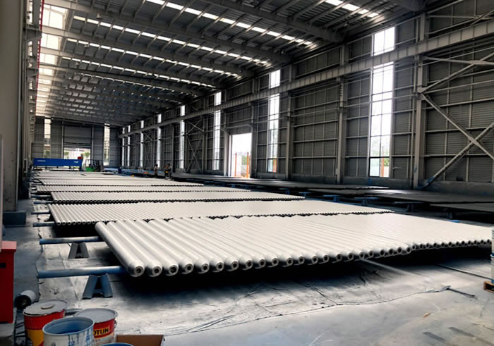 網(wǎng)架加工成型后對(duì)焊縫質(zhì)量應(yīng)進(jìn)行超聲波探傷檢驗(yàn),如有不合格產(chǎn)品應(yīng)立即進(jìn)行返工。網(wǎng)架經(jīng)過(guò)檢驗(yàn)校正后采取拋丸除銹方法對(duì)鋼構(gòu)件表面進(jìn)行處理,根據(jù)工程需要進(jìn)行涂...